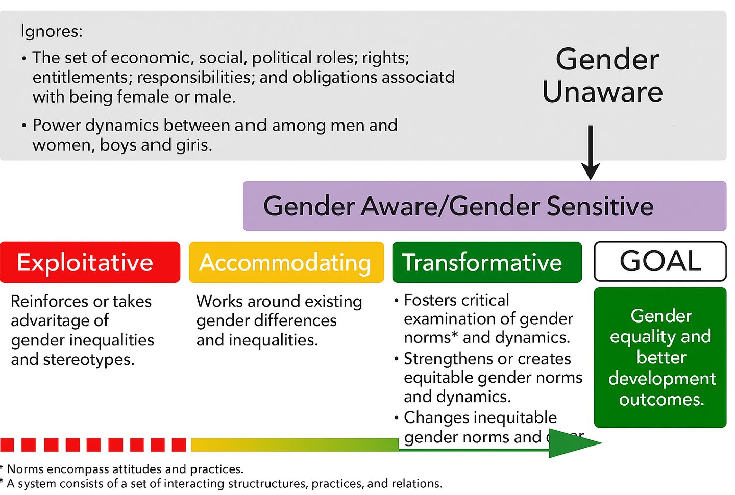 Le terme gender sensitive désigne la capacité à reconnaître, comprendre et intégrer les considérations de genre — qu'elles soient biologiques, économiques ou socio‑culturelles — dans l’analyse, la planification, l’intervention et l’évaluation des interventions de santé, d’éducation, de politiques publiques ou de services sociaux.